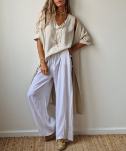 Pantalon De Lino Blanco