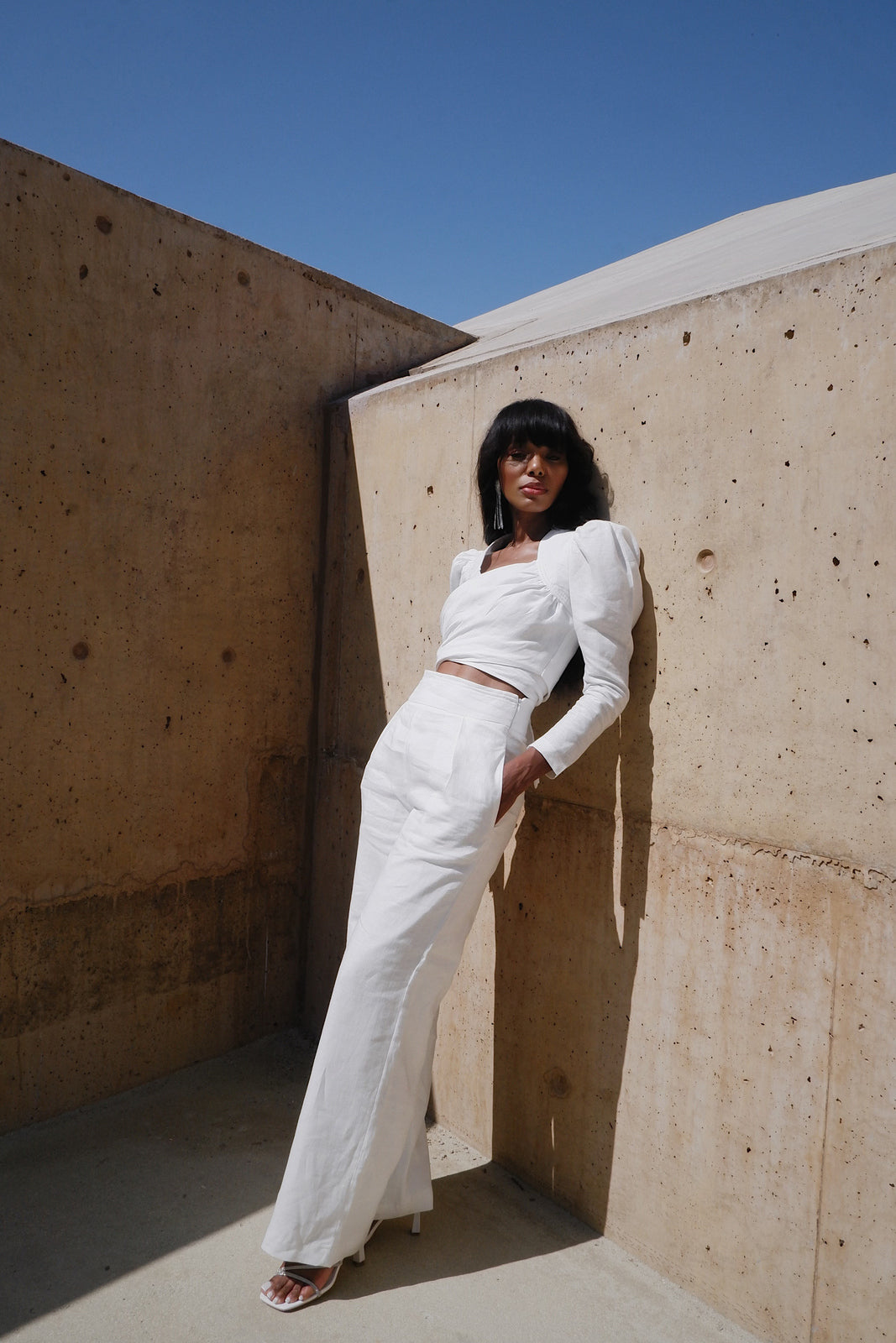 pantalon de lino blanco
